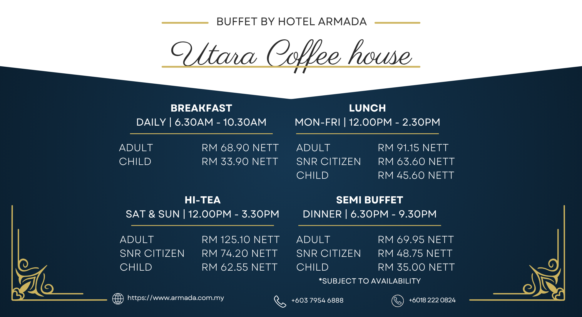 Buffet Pricing @ Utara Restaurant